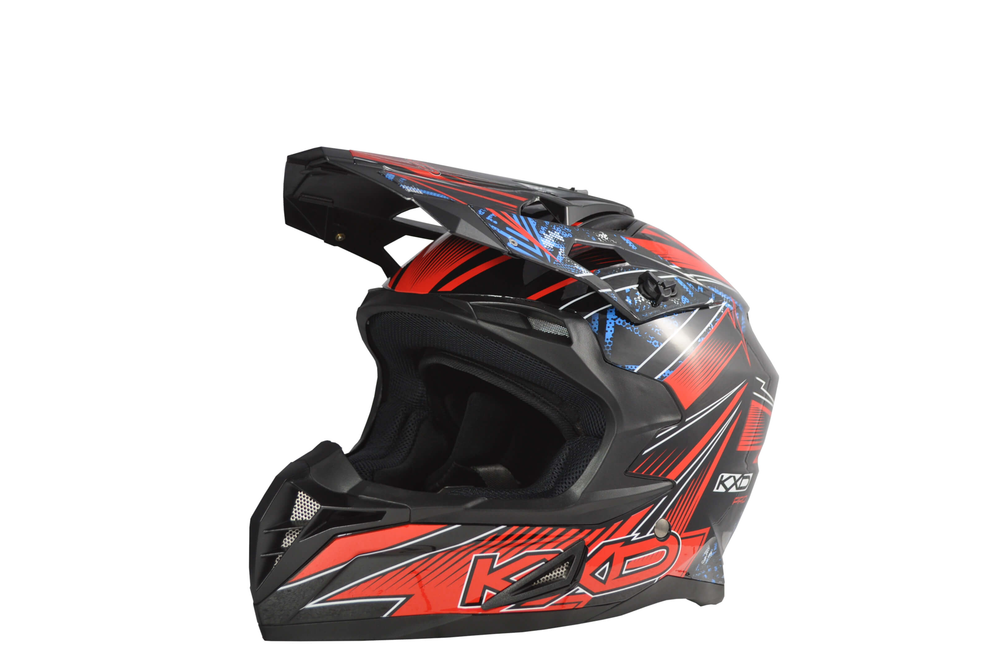 Kask CROSSOWY KXD PRO SPORT 911 posiada daszek, odpinane wnętrze z tkaniną antybakteryjną, zaawansowany system ACS, skorupę z poliwęglanu, regulowaną wysokość osłony przeciwsłonecznej, system wentylacji. Spełnia normy ECER22.05 posiada certyfikat europejski CE. Dostępne kolory: